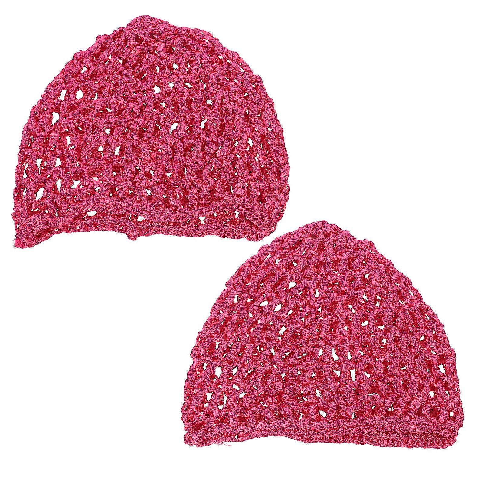 Crochet Hair Net Wig Cap for Sleeping 2Pcs Rosy Nylon Mesh Snood Hats