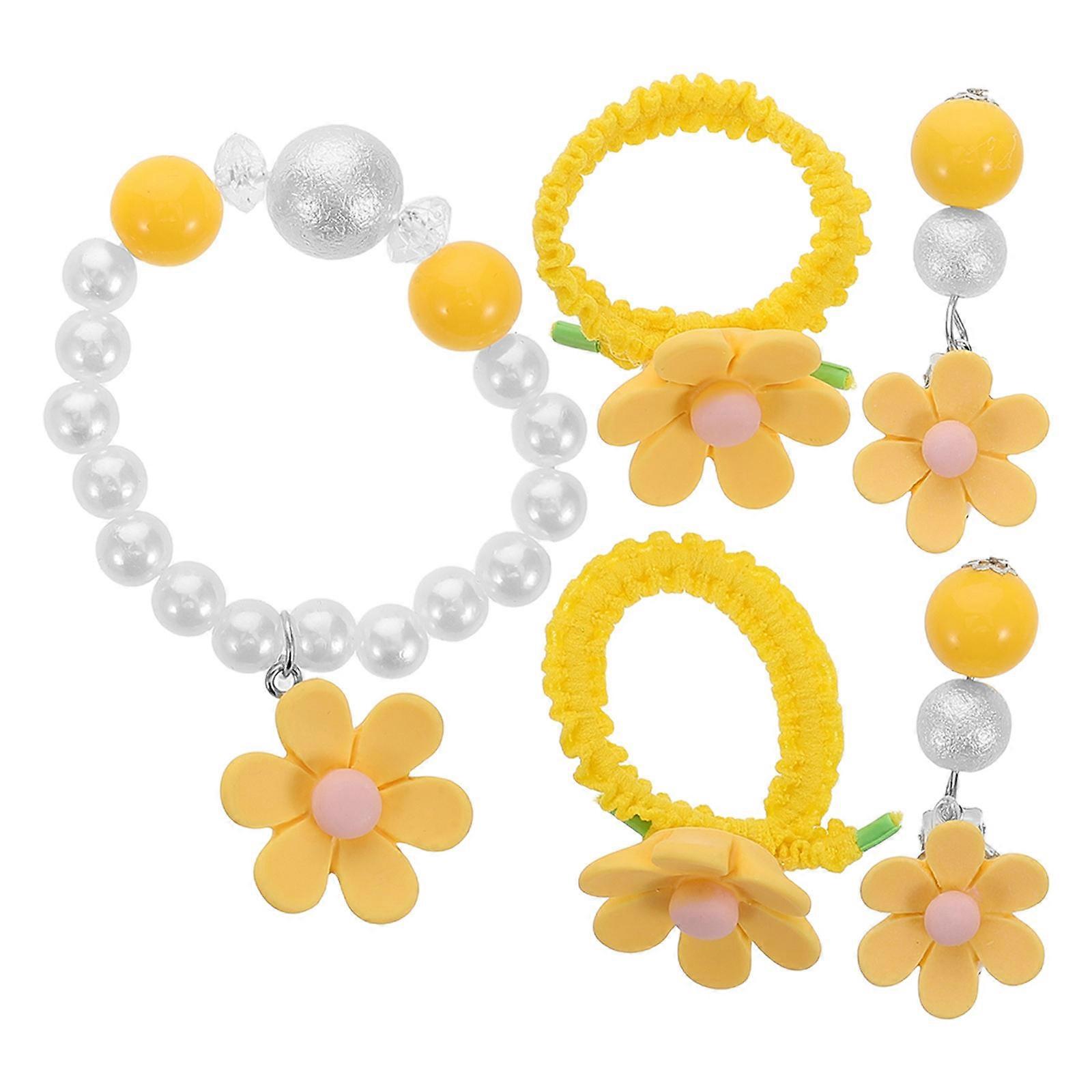 Little Girls Daisy Pearl Bracelet Set Festive Celebrations Comfortable Elastic Fit 1Set