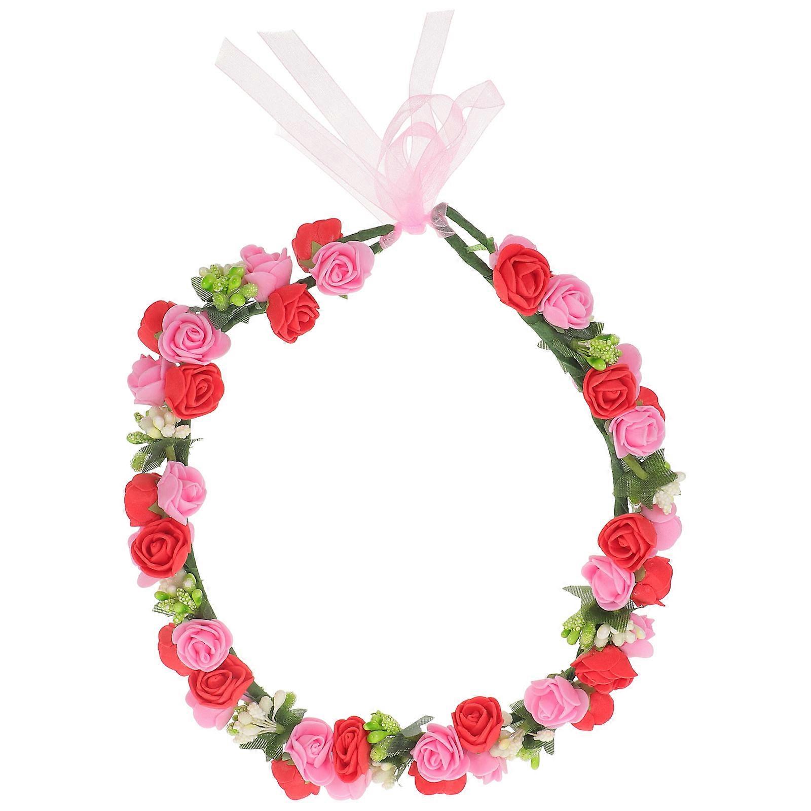 Wedding Headband Flower Hair Wreath For Bride Women Headwear Red 1 Pcs