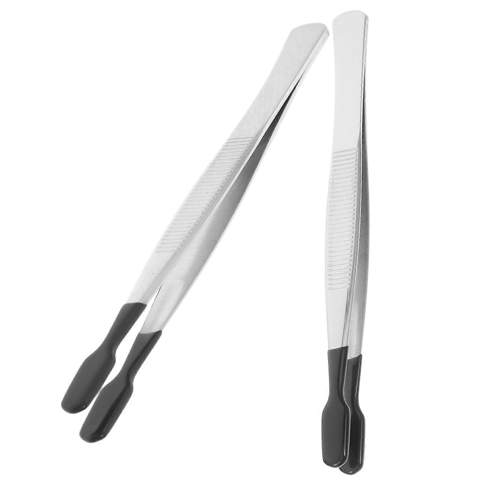 2pcs Tweezers Stamp Tongs Stainless Steel Jewelry Non Slip Flat Silicone Tip Coin Tongs