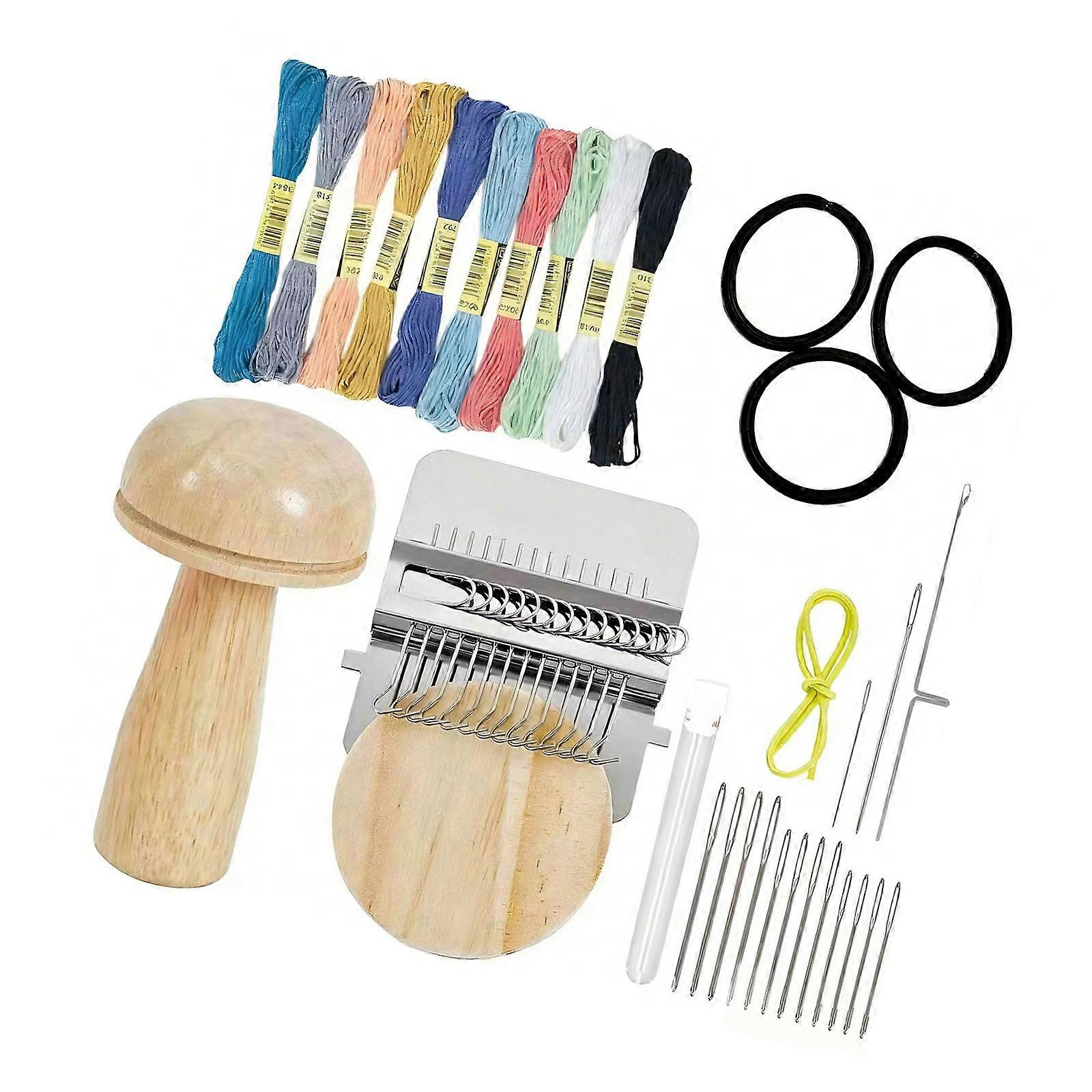 14 Hook Wood Knitting Tool with Wooden Darning Mushroom Large Eye Needle and 10 Color Thread for Clothing Repair Multicolor