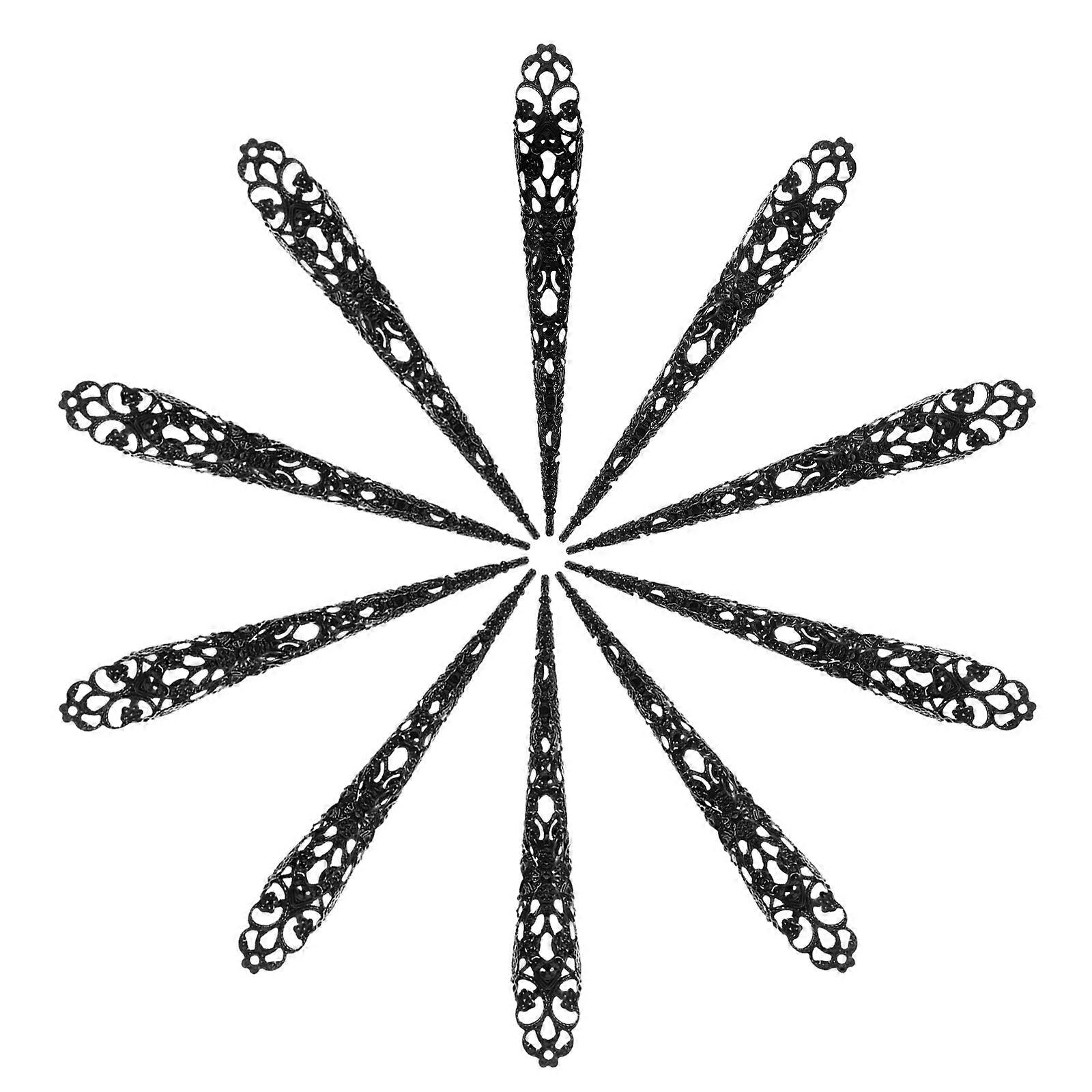 Black Finger Nail Tips Rings for Halloween Cosplay 20Pcs Fake Covers