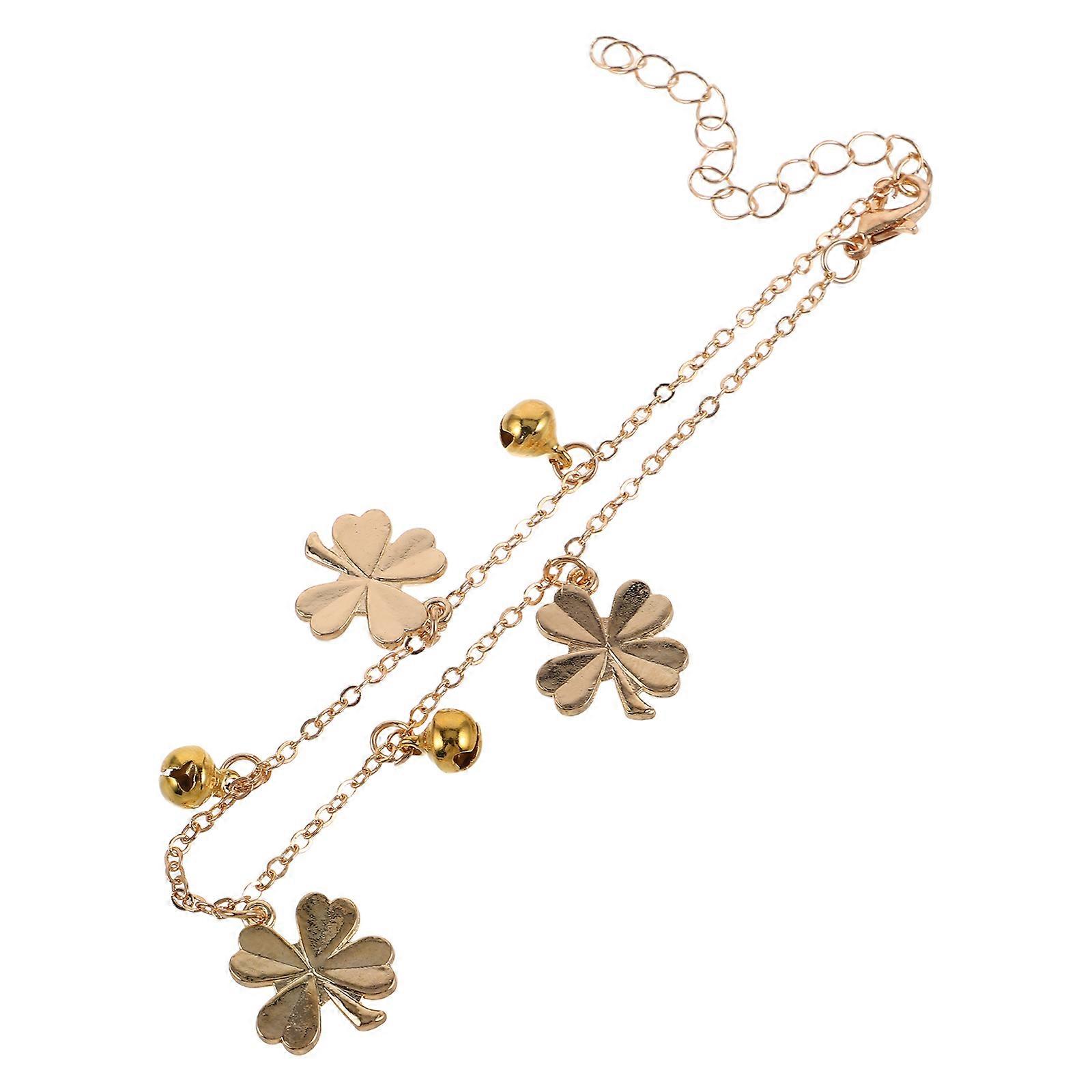 Summer Ankle Bracelet Alloy Foot Chain Anklet with Four-Leaf Clover Bells