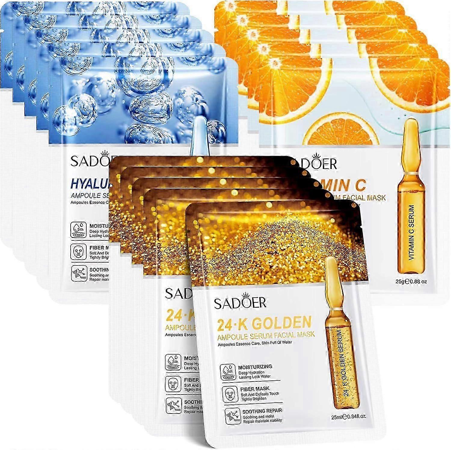15 Pack Premium Moisturizing Face Sheet Mask, 24k Gold, Hyaluronic Acid Vitamin C Face Mask Set, Hydrating, Skin Brightening, Anti-wrinkle Real Dee