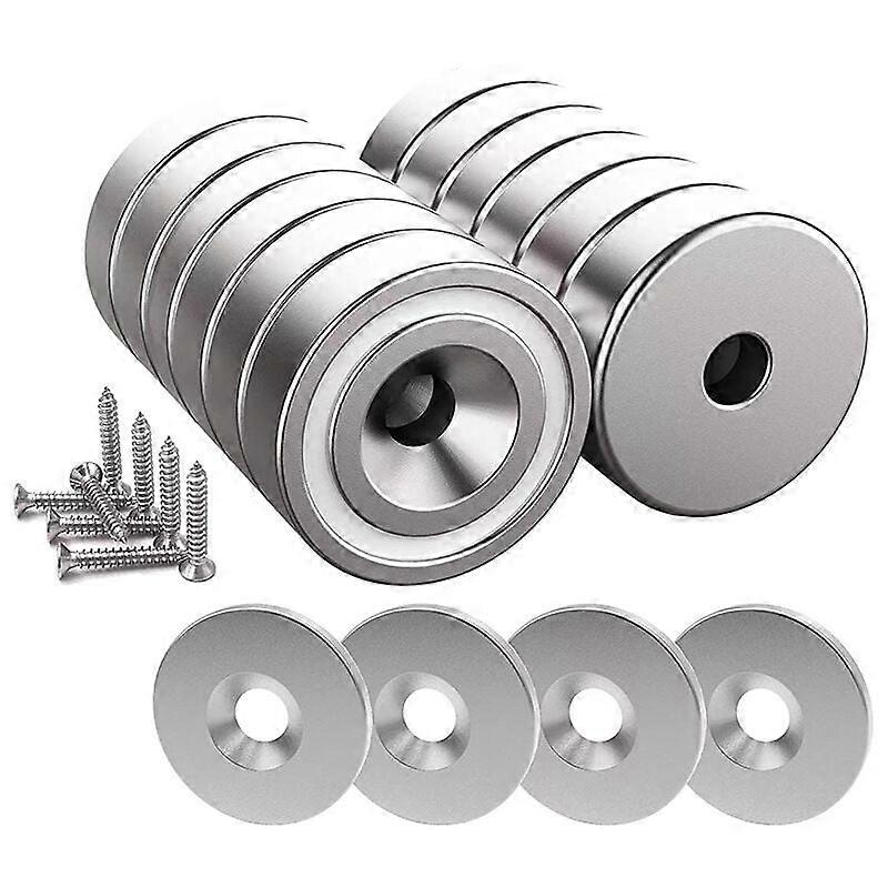 12 pieces Neodymium magnets 10 KG force 20 x 7 mm with hole and capsule, countersunk pot magnet with screw and 12 steel pads (Bright Silver)