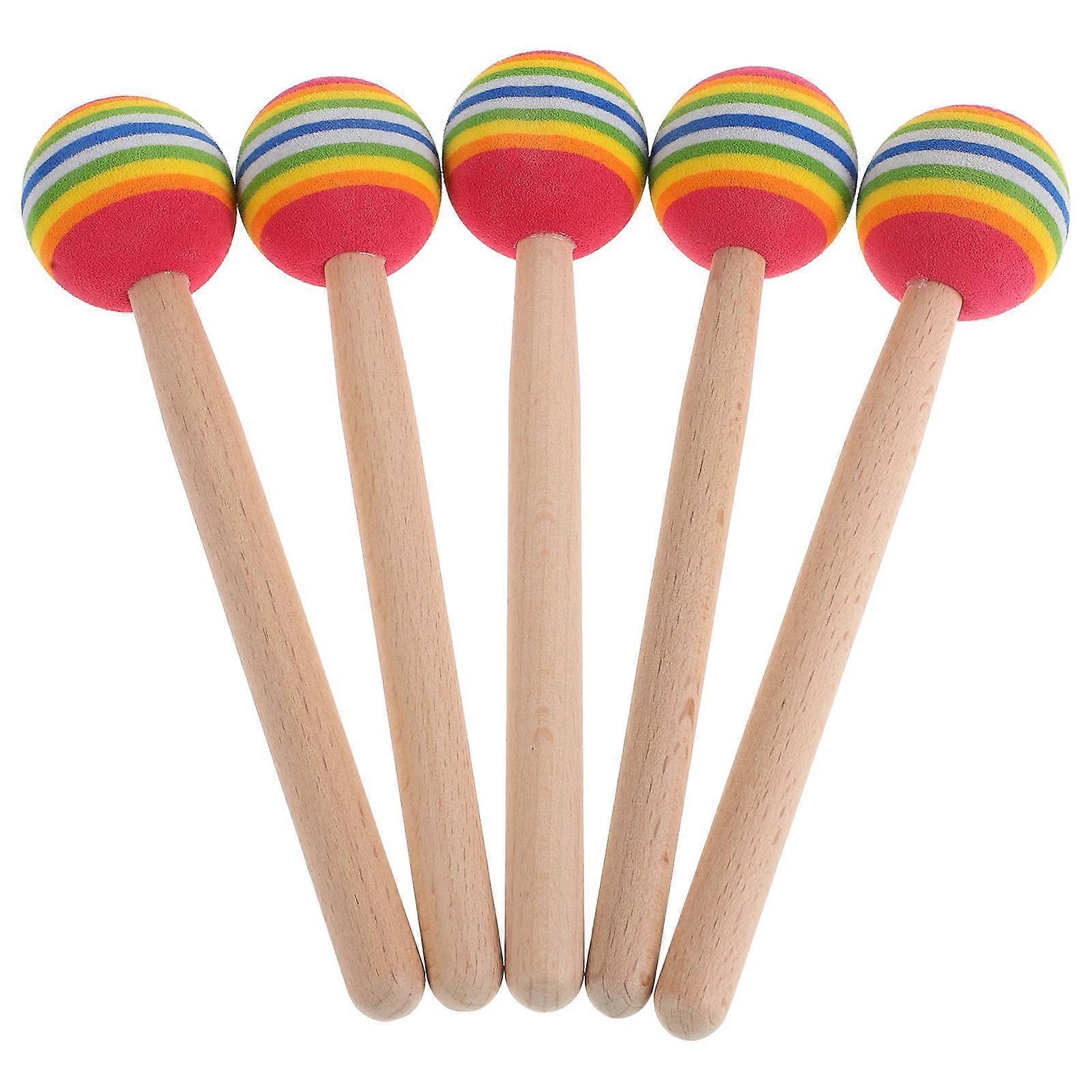 for both individual play and group activities, these percussion mallet sticks can be used in various settings such as preschools, music classes, and at home. The round drum sticks are designed to be lightweight and easy to grip, allowing toddlers to explore different sounds and rhythms. Encourage your child to experiment with different and tempos, fostering a love for music from an early age. Features -Color:Assorted Color -Material:Wood,Sponge -Size:16.00X3.50X3.50cm/6.29X1.38X1.38in -Rainbow colors: the rainbow colored drumsticks are visually appealing and stimulate children's interest in music and percussion -Soft and safe: designed with soft sponge tips, these drumsticks are safe for young children, preventing any potential injuries during play - : these drumsticks combine the joy of music with the fun of percussion, making them a toy for musical exploration -Skill development: helps in developing fine motor skills and handeye coordination as children different rhythms and -Ideal for toddlers: specifically designed for toddlers, these drumsticks are lightweight and easy to handle, making them for little hands Package list: 5 x Stick