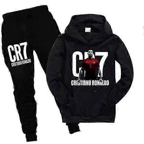 Cristiano Ronaldo CR7 Kids Sportswear Tracksuit Long Sleeve Hoodie Sweatshirt Pants Casual Outfits Black New Arrival
