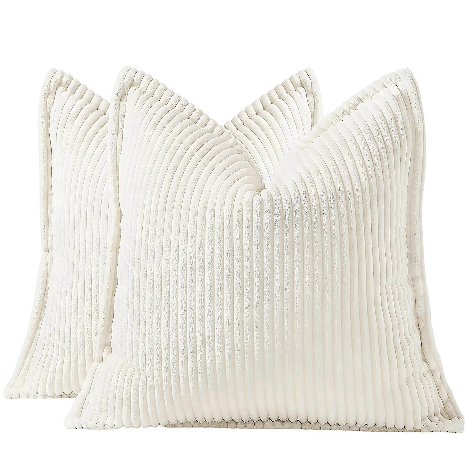 Pack of 2 Velvet Corduroy Sofa Pillow Case Soft Polyester Fabric Striped Cushion Cover for Living Room Bedroom Decors 1 white