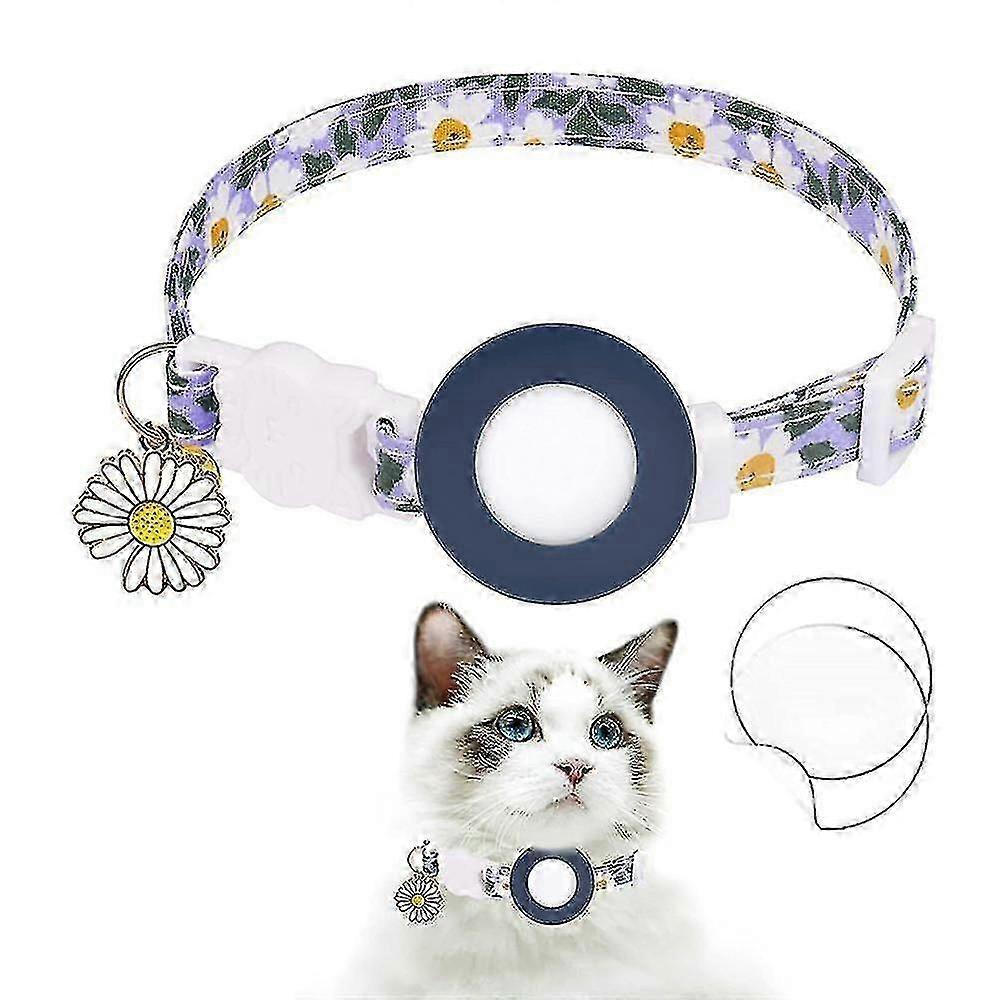 Airtag Cat Collar, Kitten Collar Breakaway With Silicone Airtag Holder, Bells Flower Charm For Girl Cats Boy Cats Small Dogs-airtag Not Include