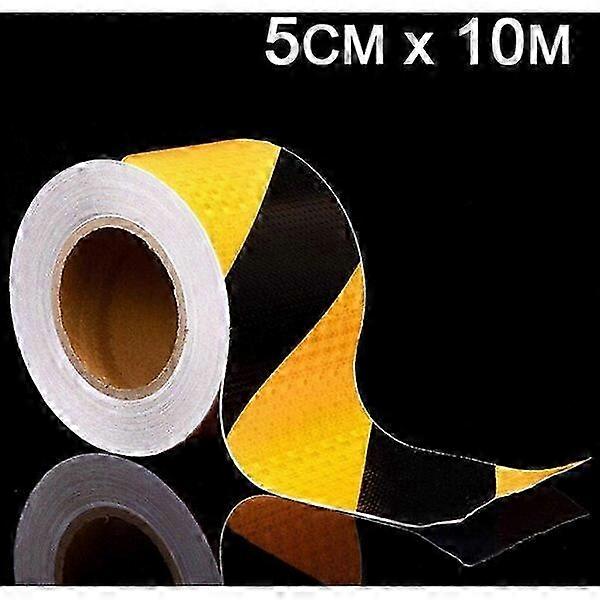 Reflective Warning Tape, Black And Yellow Diagonal Stripes, 5cm X 10m, Clear Reflection Day And Night