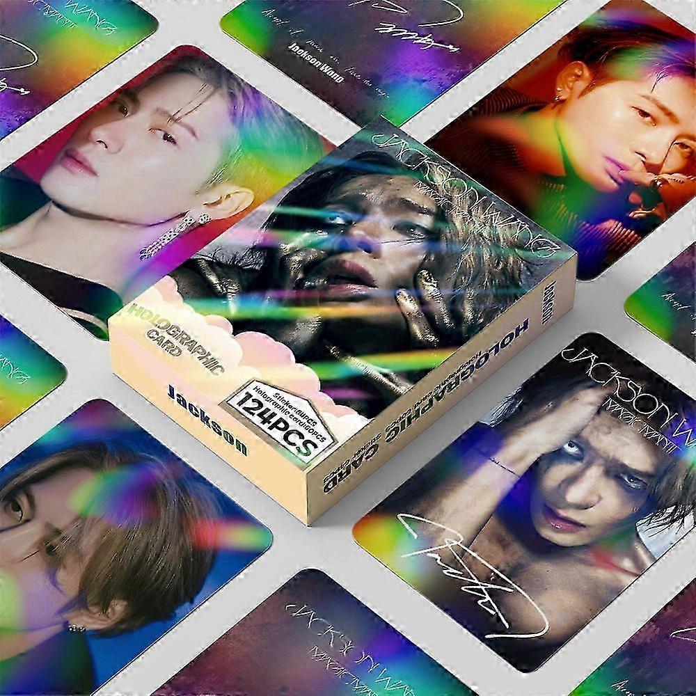 124 PcsSet Jackson Wang Holographic Flash Cards - Wang Jiaer MAGICMAN2 Album Photo Cards with Bonus Stickers