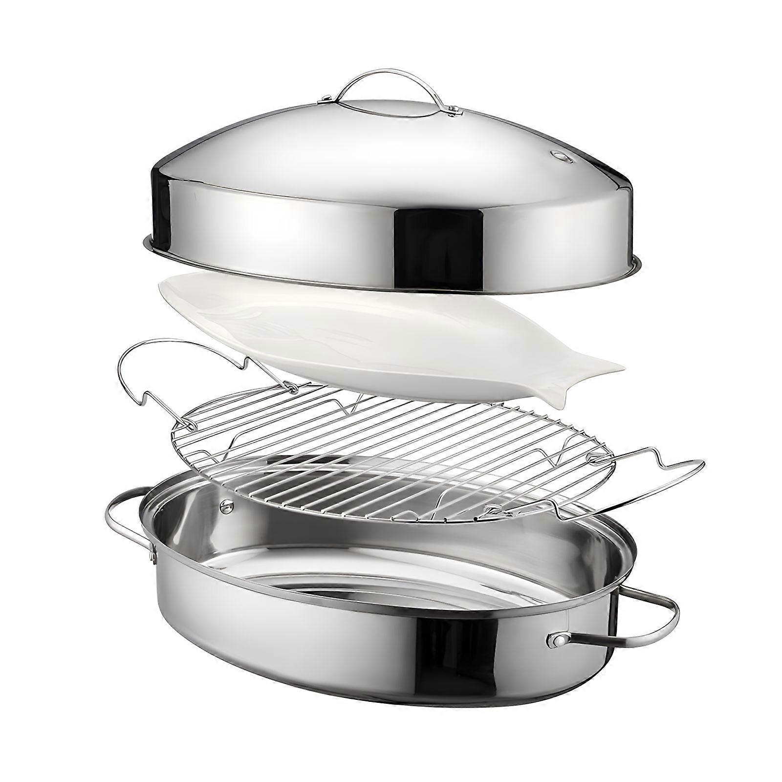 Stainless Steel Cooking Set Roasting Pan with Stand Accessories Oval Turkey Roaster Pan with Rack and Lid Multicolor
