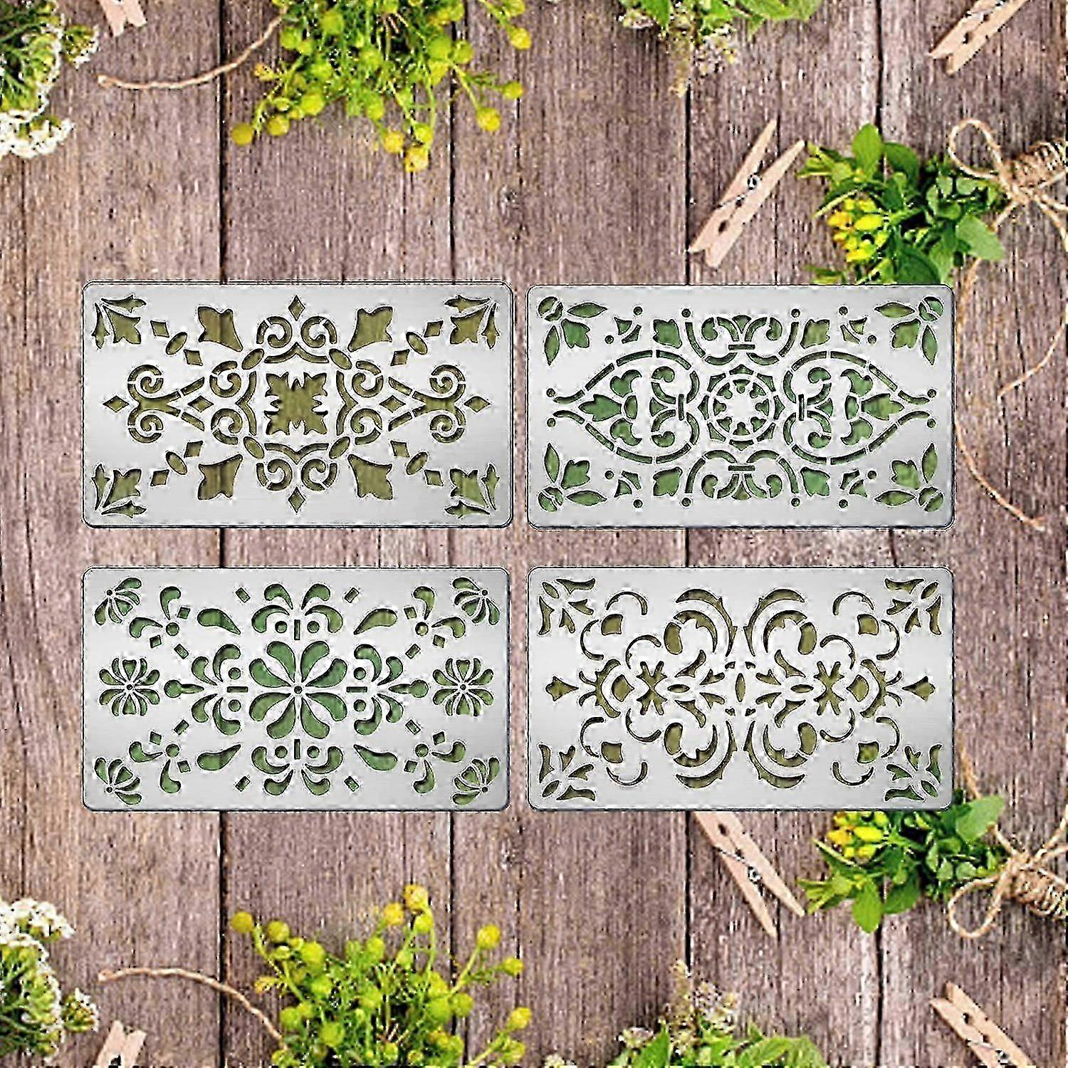 4pcs 7x4 Inch Vintage Filigree Metal Stencils Floral Stencil Template For Diy Scrapbooking Photo Album Decorative Eming Card