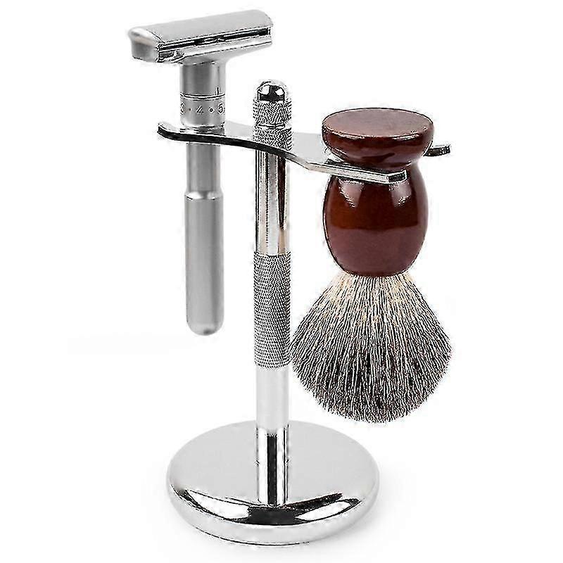Qshave Classic Safety Razor With 100% Pure Badger Hair Shaving Brush With Stand Holder For Double Edge Razor