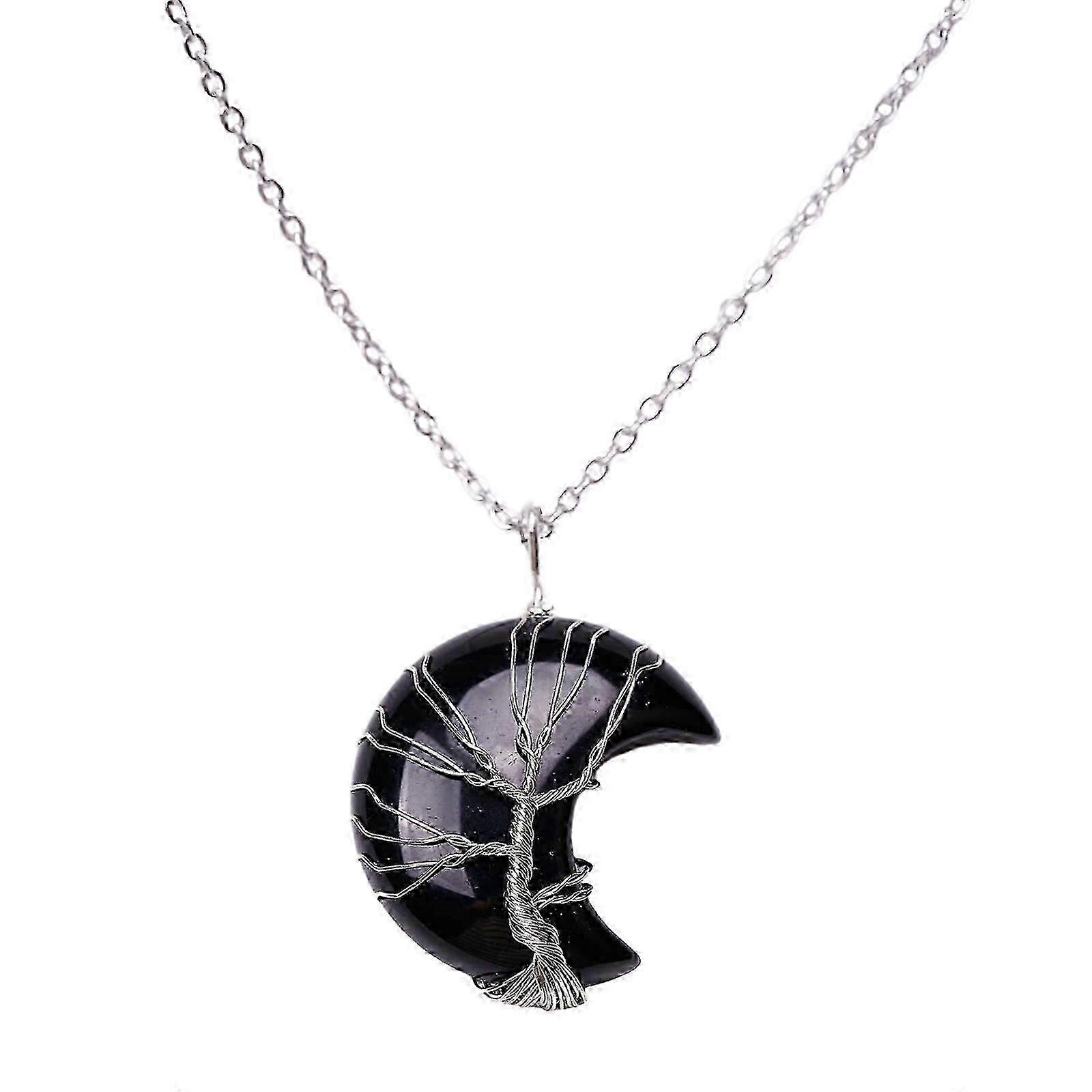 Tree Of Life Crescent Moon Pendant Necklace Stone Alloy Collarbone Chain Women Men