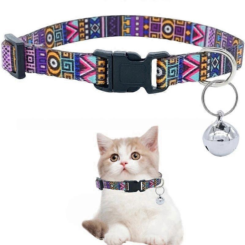 Cat Collars - Soft Cute Breakaway Collar with Bell, Adjustable Safety Kitten Collars for Girl & Boy Cats Comfortable Stylish Patterned Print Lightwei