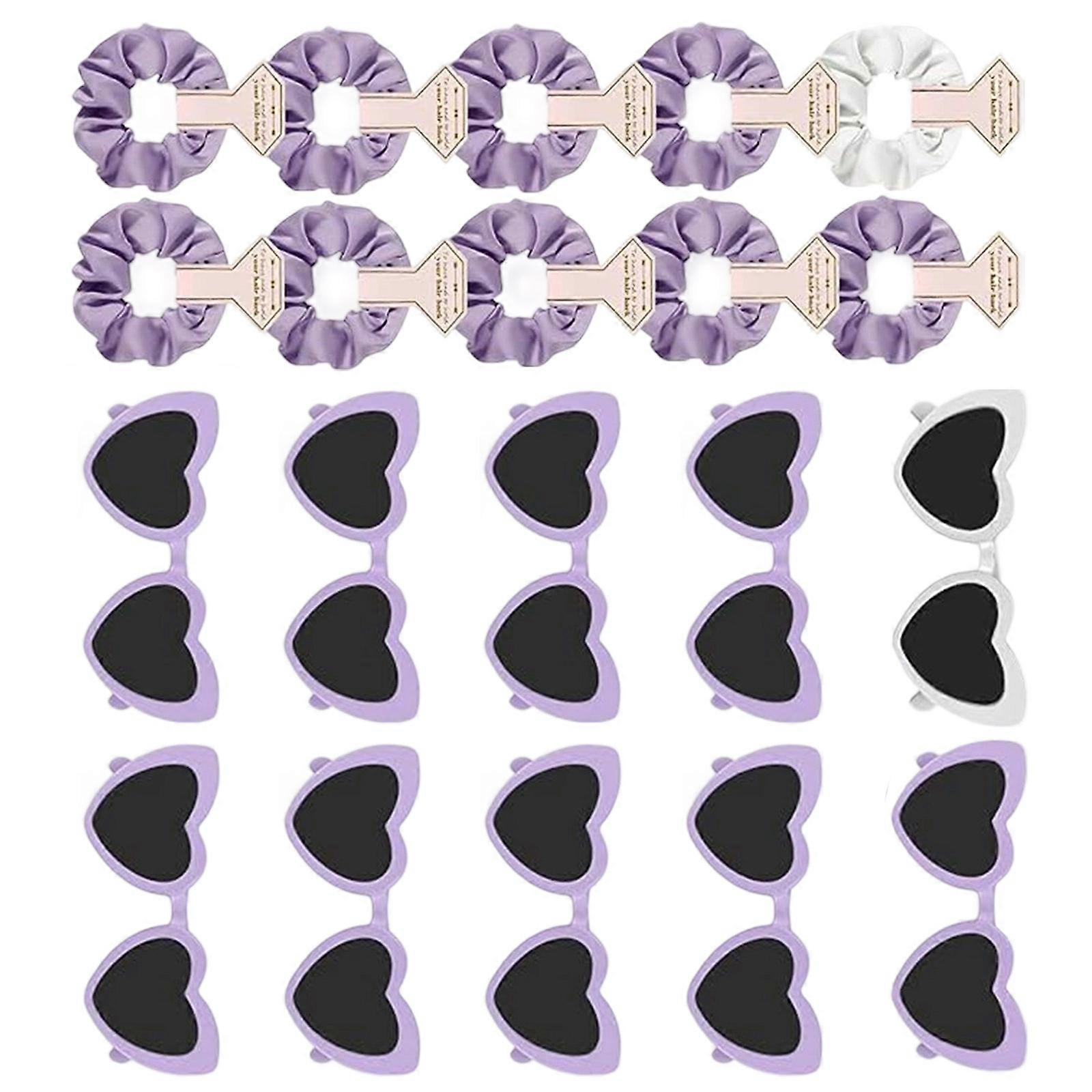 10PCS Wedding Sunglasses Hair Tie Set For Bride Bridesmaid Beach Garden Party Formal Event Gathering Dressingup Props Purple
