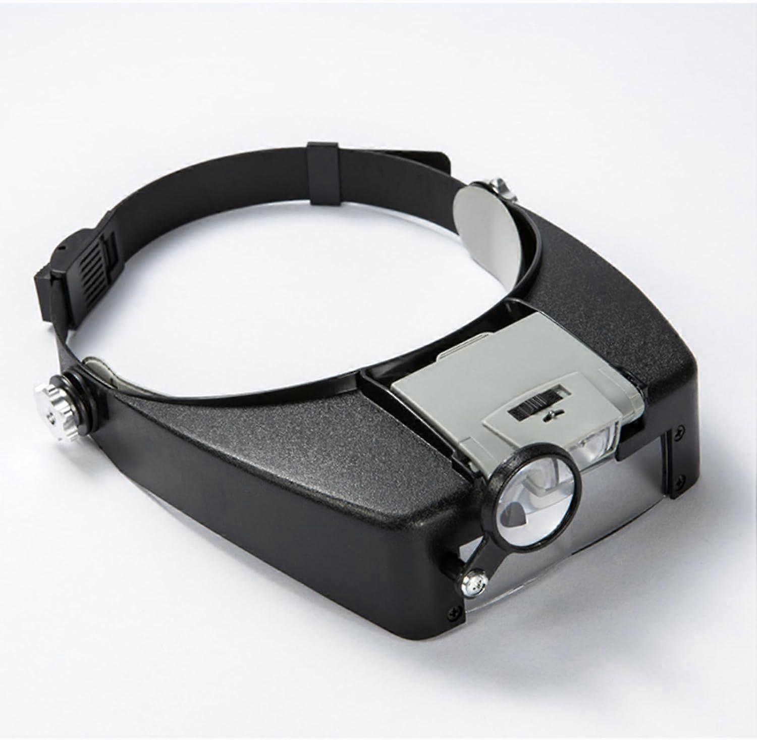 [Head Magnifier:] Uses a fixed lens, a flip lens, and a flip magnifier, with magnification ranging from 1.5x to 8.0x.[LED Head Magnifier:] Detachable dual bright white LEDs are vertically and horizontally adjustable and can be used as an independent light source. Batteries not included.[Adjustable Headband:] The headband circumference is adjusted via a knob on the back for easy and smooth adjustment to different head shapes.[Suitable for Sights:] Lightweight and comfortable head magnifier suitable for everyday use, hobbyists, crafts, jewelry design, model making, reading, inspection, and other low-vision tasks.[Two Lenses:] Features two parallel lens assemblies; you can also overlap them with a drag lens for even higher magnification.