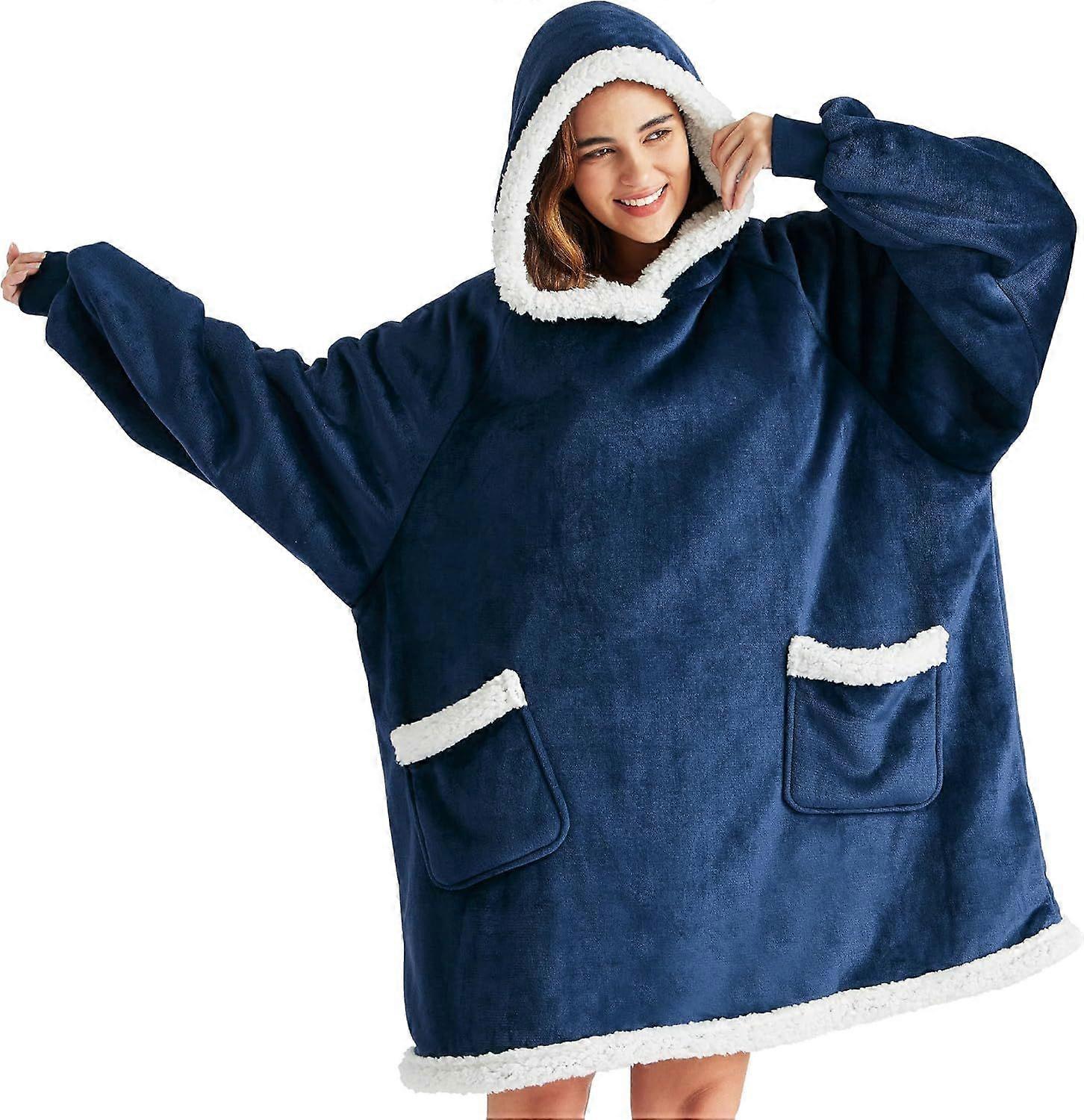 Blanket hoodie, wearable blanket hoodie, a gift for mom, a birthday gift for women, suitable, navy blue, standard fit, one size fits all.