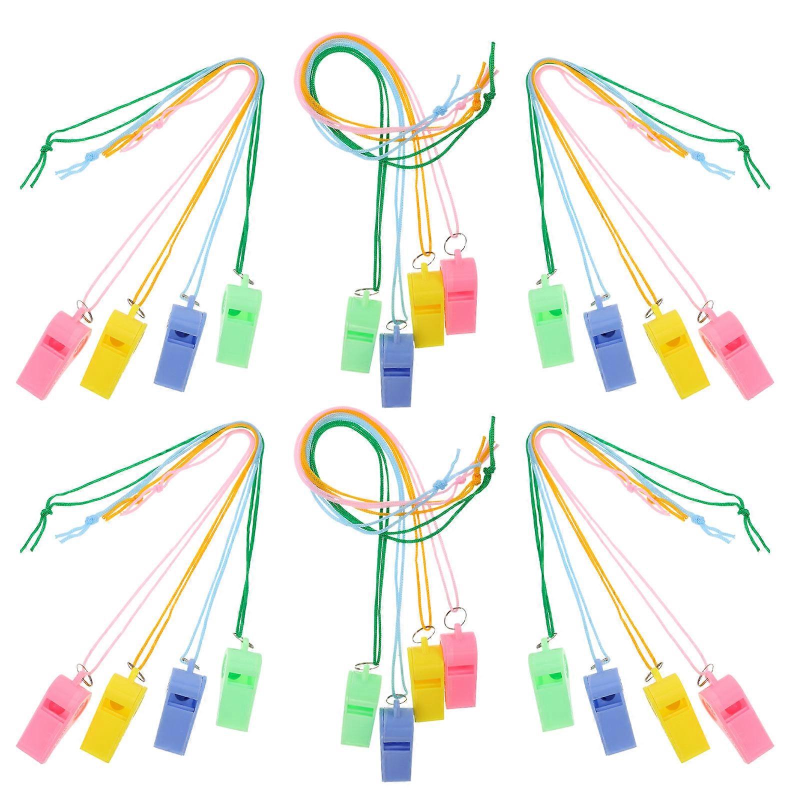 24Pcs Neon Plastic Whistles for Children Party Use Loud Colorful Accessories