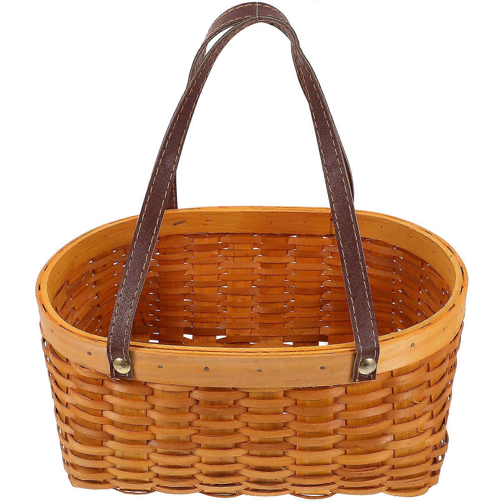 Ivory Woven Basket with Handle for Camping Picnic Storage Use