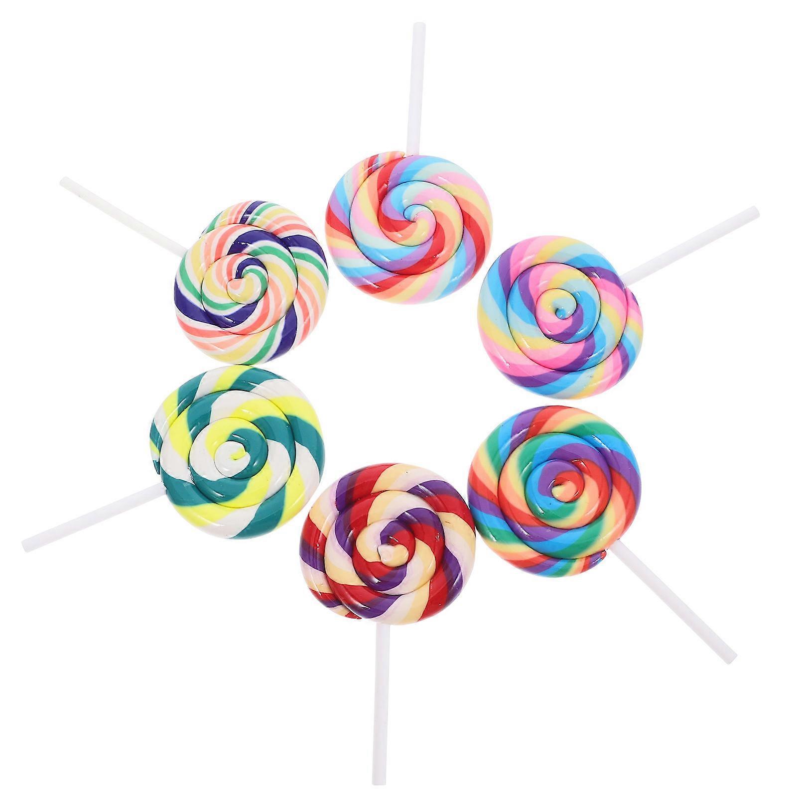 DIY Polymer Clay Lollipop Charms Assorted Colors Safe and Vibrant for Craft Projects 6pcs