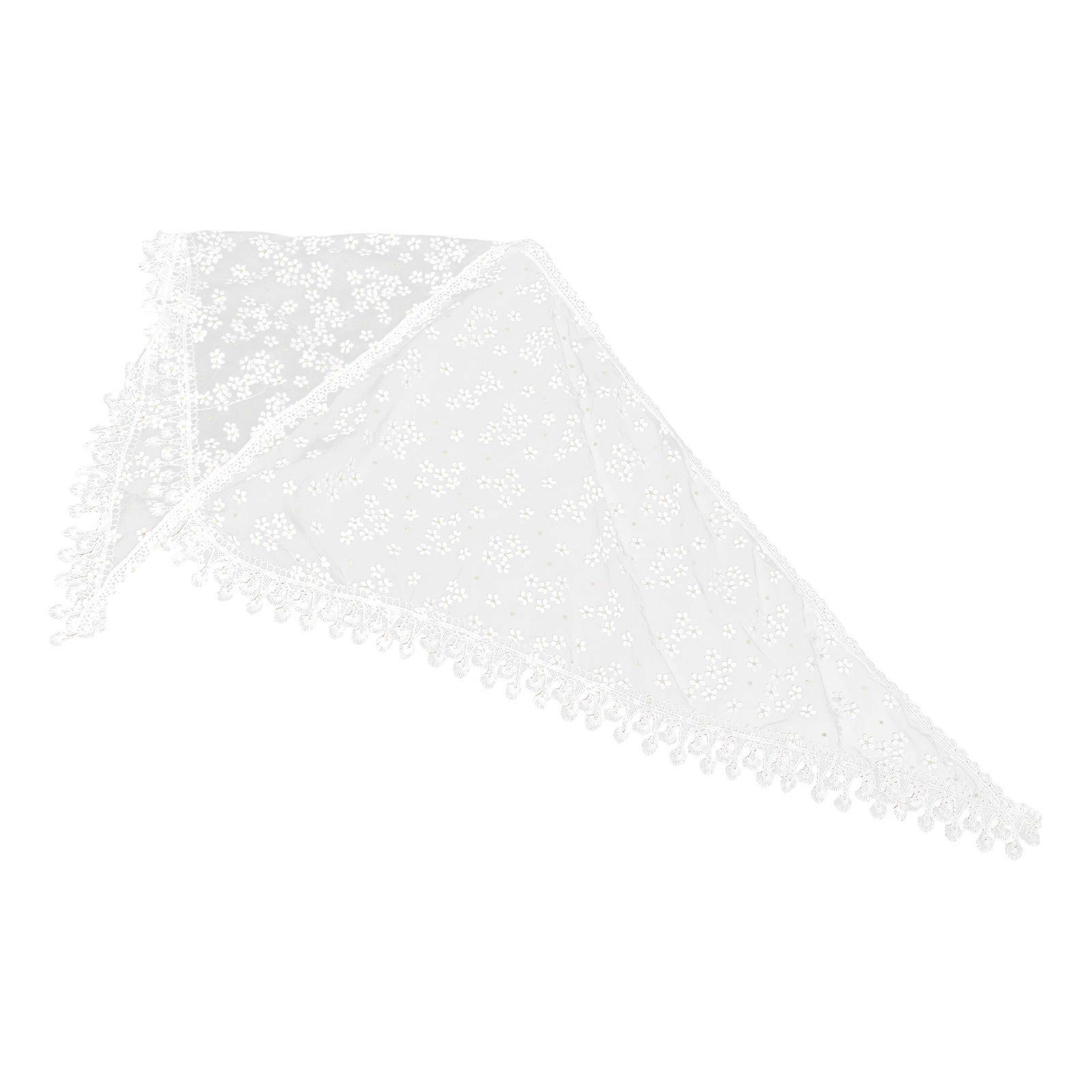 White Lace Scarf Triangular Headscarf with Tassels for Women