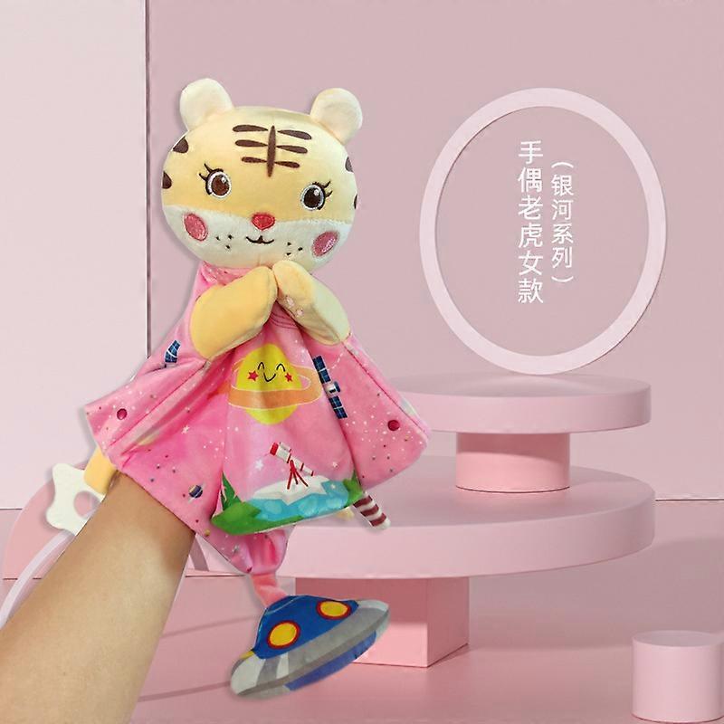 Comforting hand puppet, parent-child interactive comfort blanket, baby sleep comfort plush toy, 28cm, Galaxy hand puppet female tiger