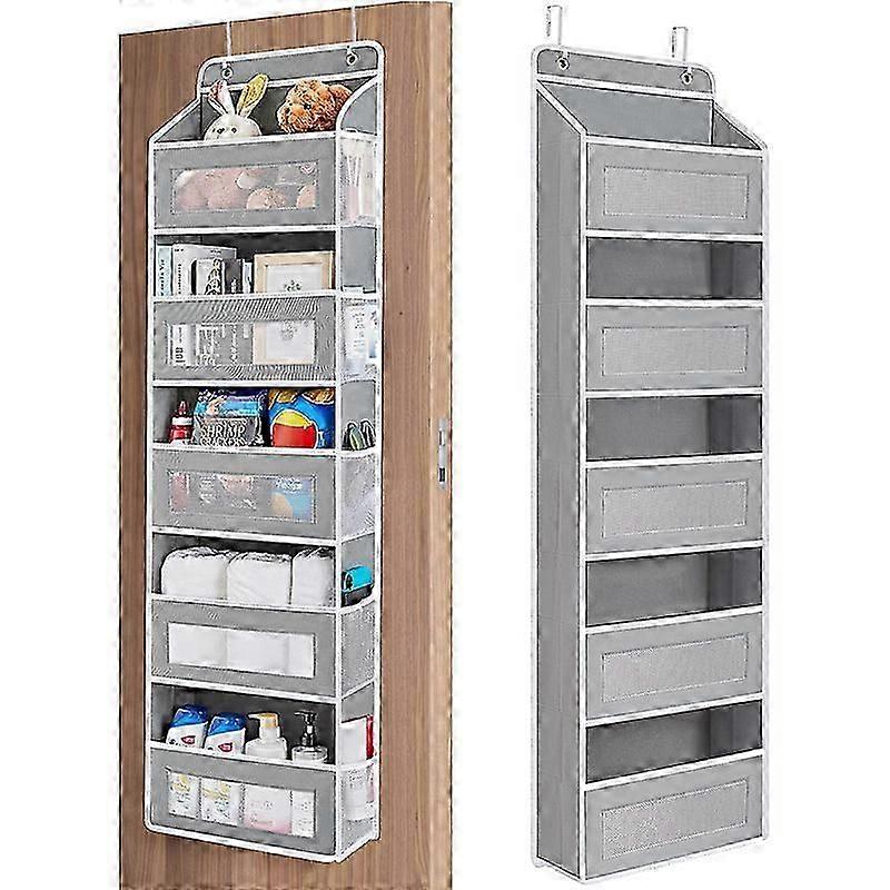 Over the door storage organizer, 5 shelves, heavy duty hanging storage organizer with 10 side pockets, pantry cabinet door organizer.