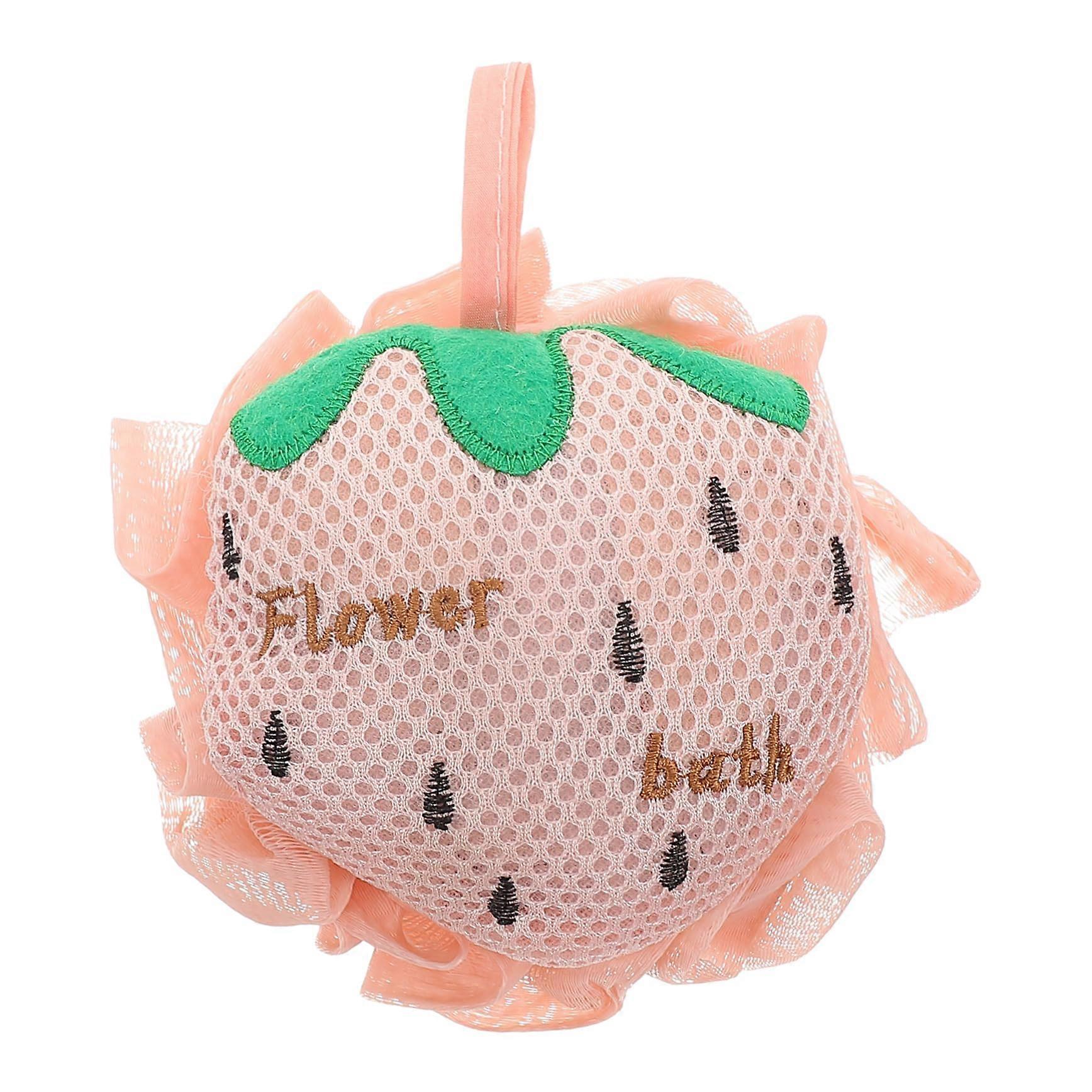 Strawberry Bath Sponge Pouf with Playful Design, Large Exfoliating Shower Loofah for Gentle Skin
