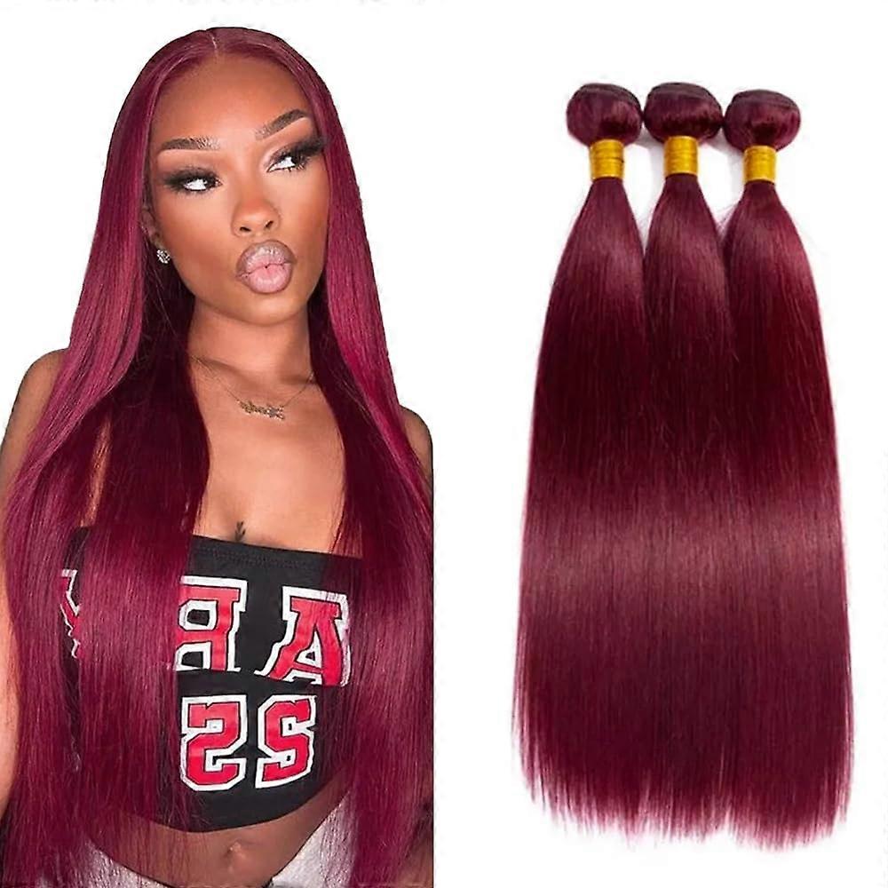 Product overview Human hair extensions in straight texture, unprocessed virgin Remy, color 99J burgundy. Available in 30 inch, 32 inch, and 34 inch lengths. Each includes three bundles for full, naturallooking coverage. Key benefits Natural appearance and movement: Unprocessed virgin Remy hair retains aligned cuticles for a smooth, realistic finish that blends easily with natural hair. Instant length and volume: Three bundles provide sufficient fullness and layering potential so you get long, thick hair without waiting for growth. Versatile styling: Straight texture is easy to style for sleek looks or to curl for added shape while maintaining a natural feel. Color impact without commitment: Rich 99J burgundy offers a bold color change without chemically treating natural hair. Durable and low maintenance: quality human hair resists tangling and sheds minimally when cared for using standard hair extension practices. Product attributes Material: Unprocessed virgin Remy human hair Texture: Straight Color: 99J burgundy Length options: 30 inch, 32 inch, 34 inch Pack: 3 bundles per set How this product solves common needs Adds length and thickness instantly for those with fine or short natural hair Provides a controlled color change without dyeing natural hair Simplifies styling for events where a finished, uniform look is required Practical use scenarios Special occasions: Use the threebundle set to create a sleek, long hairstyle for weddings, photoshoots, or formal events. Everyday wear: Add one or more bundles to boost volume for daily routines while blending seamlessly with natural hair. Color experimentation: Try the 99J burgundy tone to test a color direction before committing to permanent dyeing. Care and styling tips Gently detangle from ends to roots with a widetooth comb. Use heat tools on moderate settings and apply a heat protectant. Wash with mild shampoos and condition regularly to preserve softness and manageability. Store bundles flat or in a breathable bag to maintain shape between uses. This set delivers a trustworthy, naturallooking way to add length, volume, and rich burgundy color using unprocessed Remy human hair in straight texture.