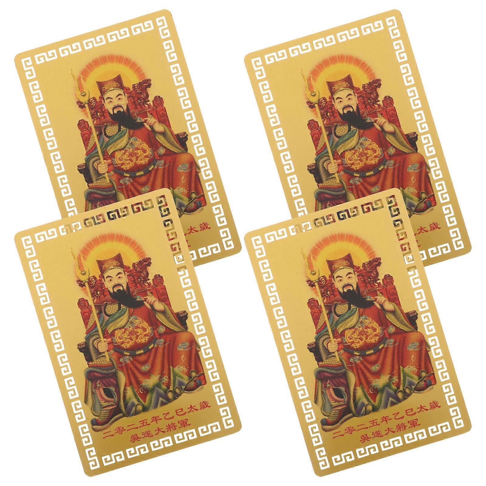 Introducing the Wu Sui General Tai Sui Gold Card, a unique and thoughtful for New Year, birthdays, and other special occasions. This amulet card, embodies the of Chinese culture. It serves as a powerful , believed to bring peace, protection, and good fortune to its bearer. Features -Color:Golden -Material:aluminium magnesium alloy -Size:8.60X5.40X0.10cm/3.38X2.12X0.04in -Ideal for new year, birthdays, and other special occasions, this unique brings blessings and good fortune to your loved ones, making every celebration memorable. -This amulet card, chinese , is believed to offer peace and protection, ensuring the safety and prosperity of those who carry it. -This card is not only but also exudes a luxurious feel, making it a choice for those who appreciate fine craftsmanship. -Lucky Amulet,With dimensions of , this card is designed to fit conveniently into , cases, and other personal items, making it easy to carry. -Its compact and portable design allows you to keep this charm close at hand, ensuring that good luck and protection are always within reach, no matter where you go. Package list: 4 x Sheets of Cards