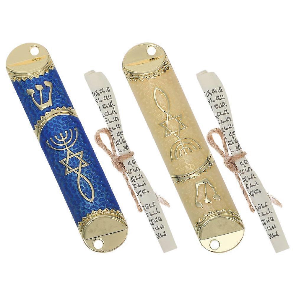 Judaica Door Mezuzah with Scroll Metal Case for Religious Home Blessing 2Sets