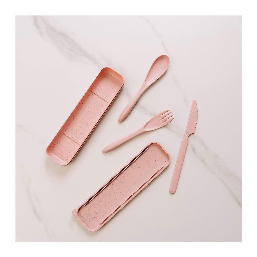Clevinger Reusable Wheat Straw Fibre Cutlery Set With Case Pink Cutlery Sets
