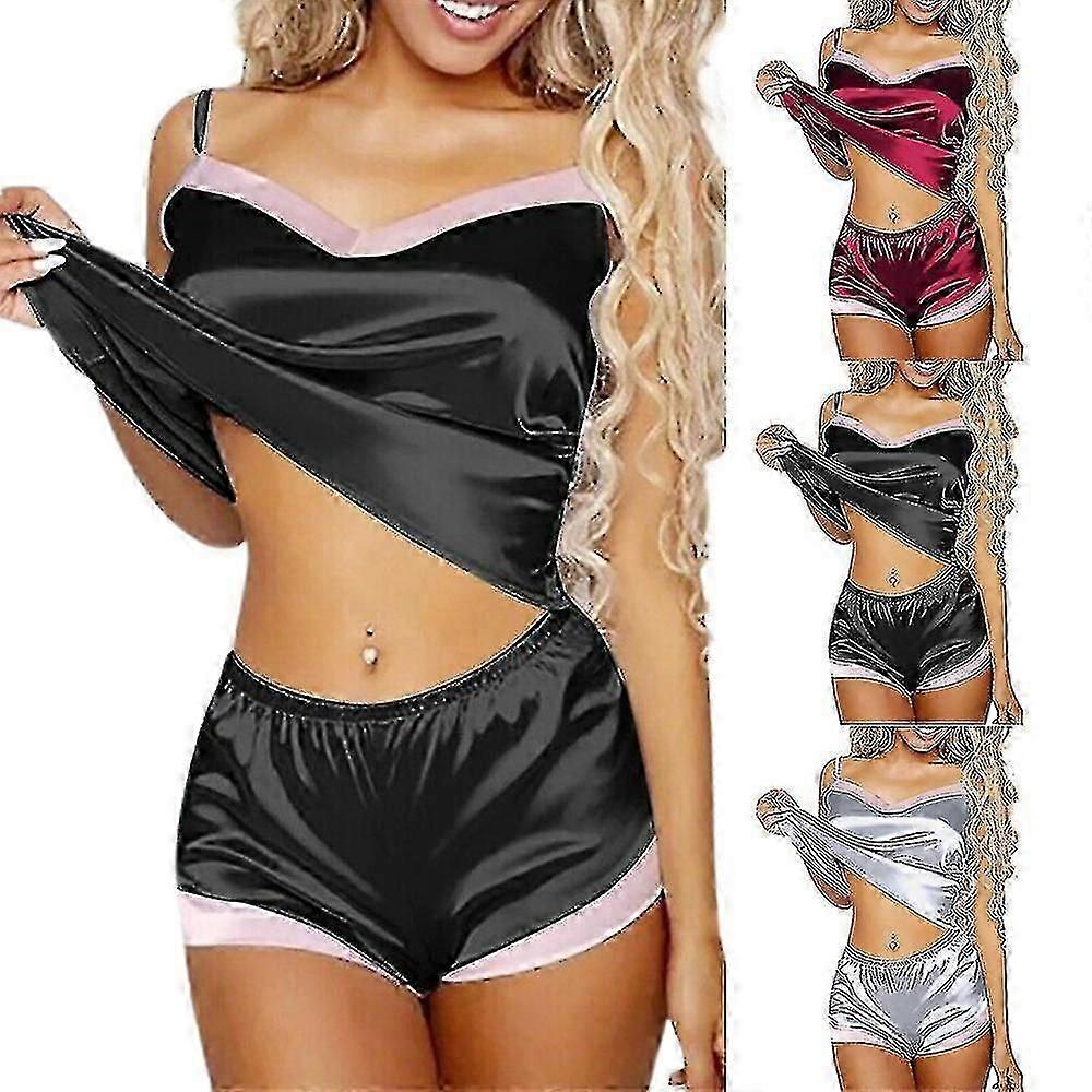 Women Satin Silk Lace Cami Lingerie Shorts Sleepwear Doll Pajamas Nightwear Set Multi-color Optional
