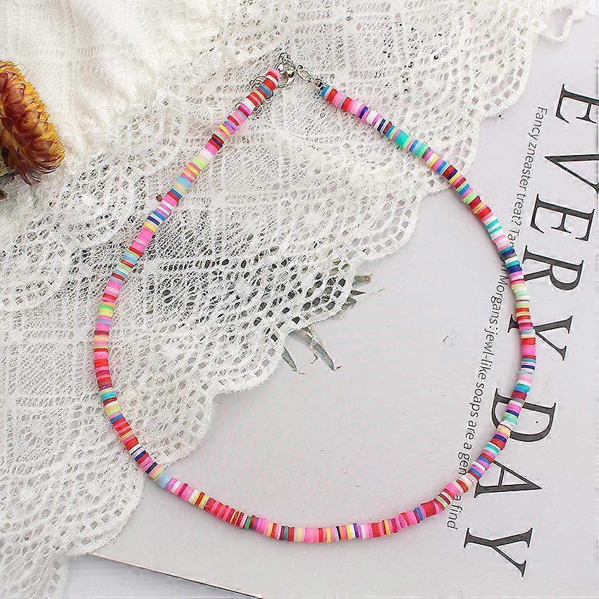 Colorful Beads Necklace Women Summer Korean Handmade Fashion Boho Polymer Clay Choker Pendant Neck Collar Female Beach Jewelry