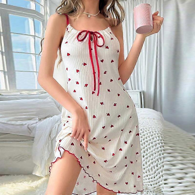 Sexy Casual Camisole Nightgown Women S Lace Up Love Print Home Dress Dress
