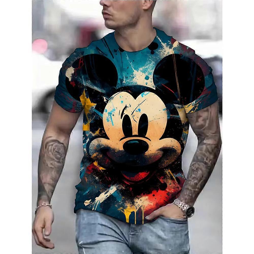 T-shirt manches courtes col rond pour homme, estival et d��contract��, Vintage, surdimensionn��, imprim�� en 3D, Disney Mickey Mouse, 2026