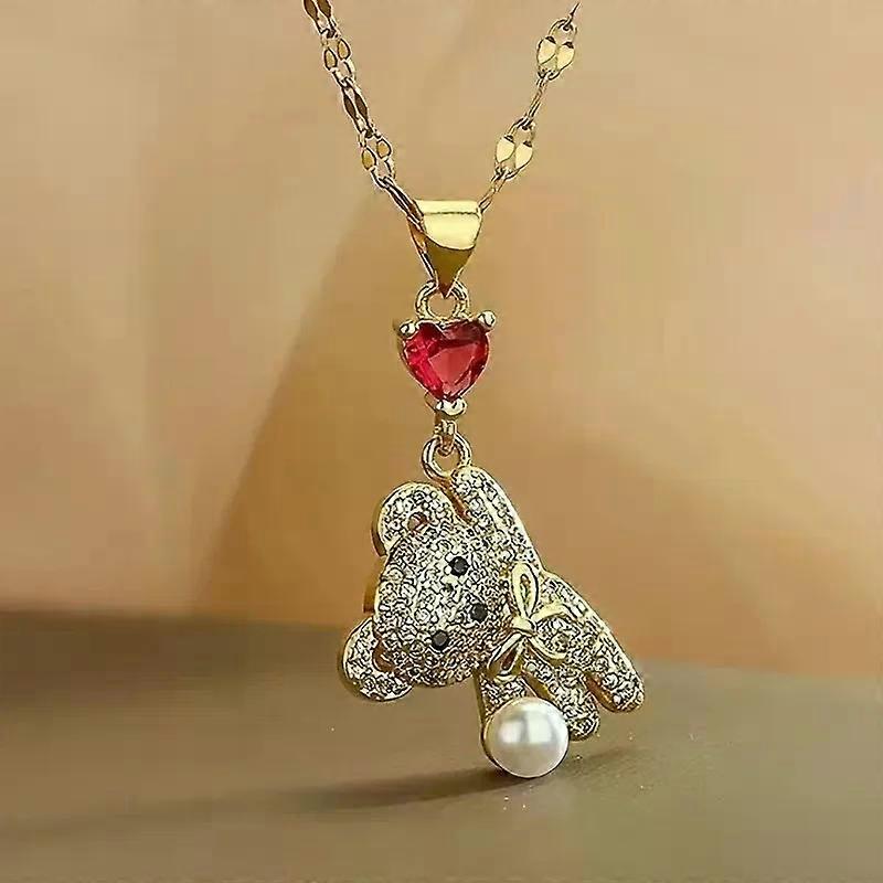 1 Piece Stainless Titanium Steel Chain Cute Bow Red Love Heart Balloon Bear Pendant Necklace Women's Romantic Jewelry Girls Gift