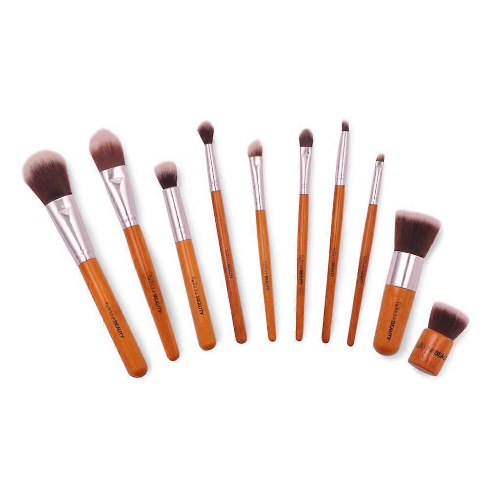 Professional 10 Pcs Bamboo Makeup Brush Set Kabuki Foundation Blush with Pouch