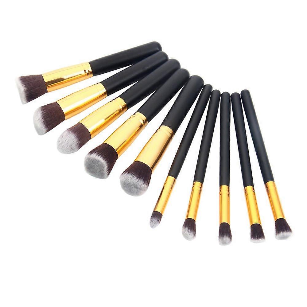 10pcs Professional Kabuki Makeup Brush Set with Soft Silky Bristles for Smooth Even Coverage Black Gold