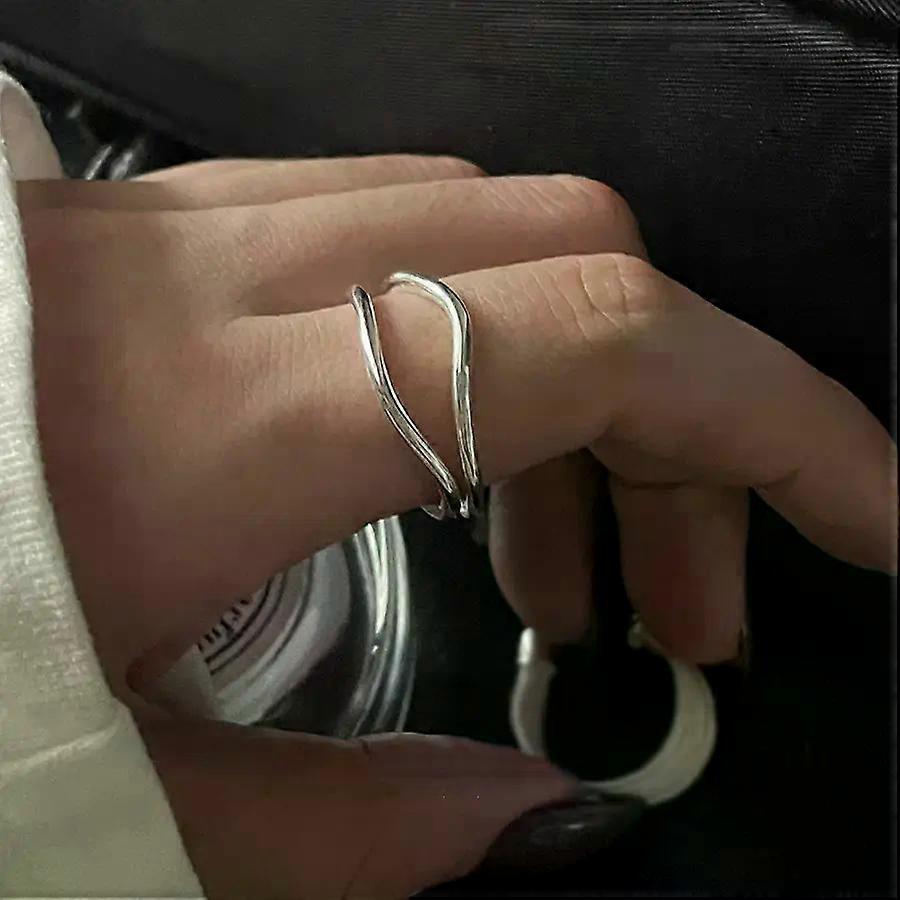 Personality Design Trendy Silver Color Multi-line Ring for Women Girl Charm Opening Irregularity Finger Ring Set Party Jewelry