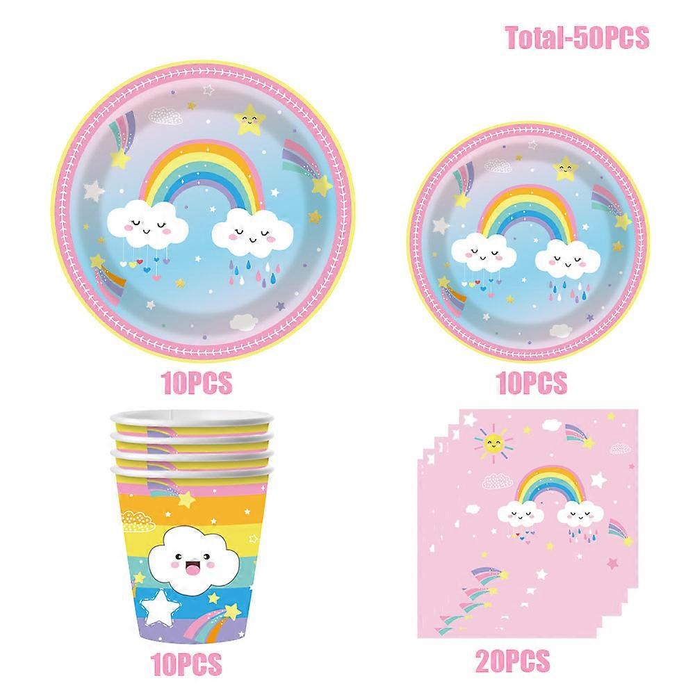 Rainbow Themed Party Decorations Disposable Tableware Set Rainbow Disposable Plates Cups Super Girls Baby Shower Decorations