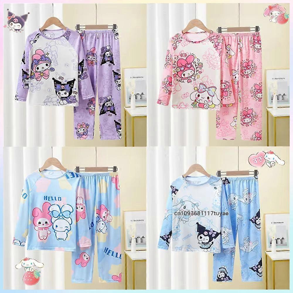 Summer Kuromi Pochacco Children's Pajamas Set Cinnamoroll Cute Anime Cartoon Kids Thin Long Sleeves Pijama Boy Girls Sleepwear