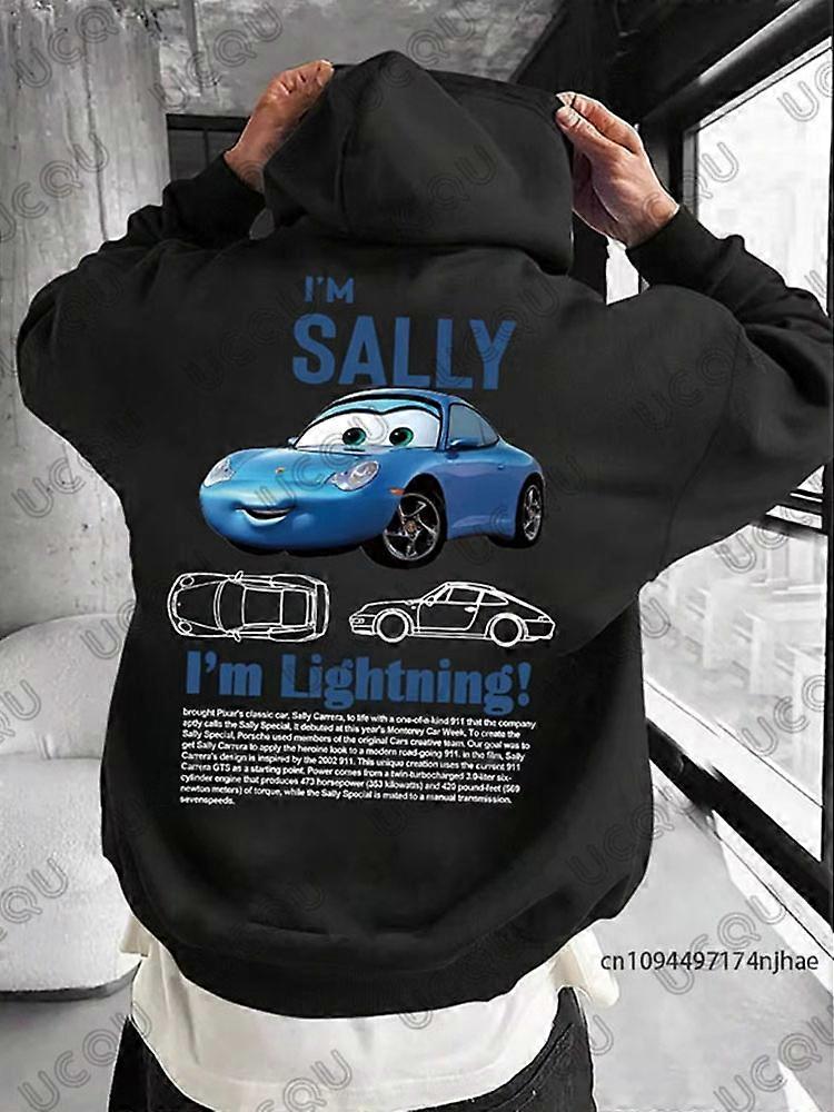 Sweat-shirt �� capuche en coton imprim�� Lightning Mcqueen & Sally pour homme, sweat-shirt �� manches longues, d��contract��, surdimensionn��, uni