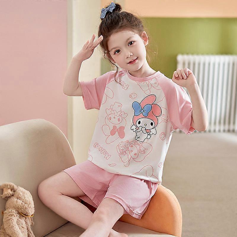 2Pcs Sanrio Children's Summer Sleepwear Cute Girl's Modal Short Sleeve Home Clothes Set Cartoon Print Shorts Short Sleeve Kawaii