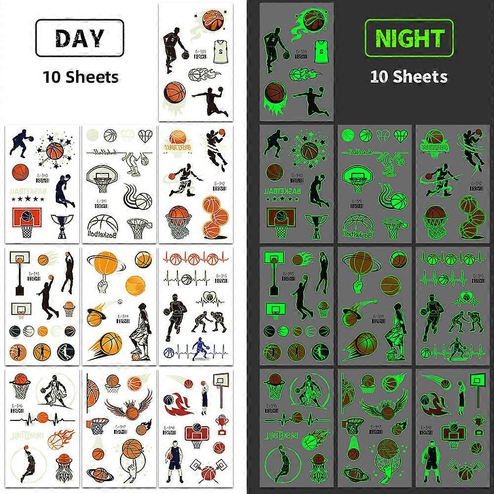 10 Sheets Sports Basketball Theme Luminous Temporary Tattoos Team Game Body Face Sticker for Kids Boy Birthday Party Decoration