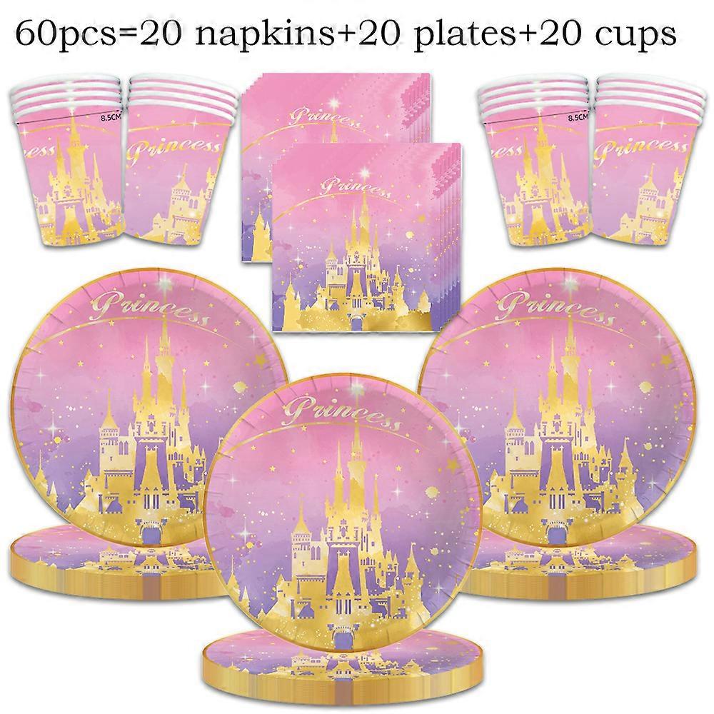 Princess Castle Theme Party Cups Plates Napkins Tableware Set Pink Princess Girls Children's Birthday Party Decorations