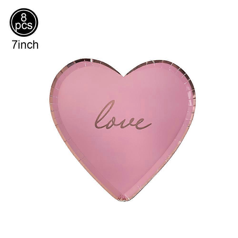 Pink Love Heart Disposable Tableware Love Shaped Paper Plates Napkins Cups Straws Bride Shower Valentines Day Wedding Supplies