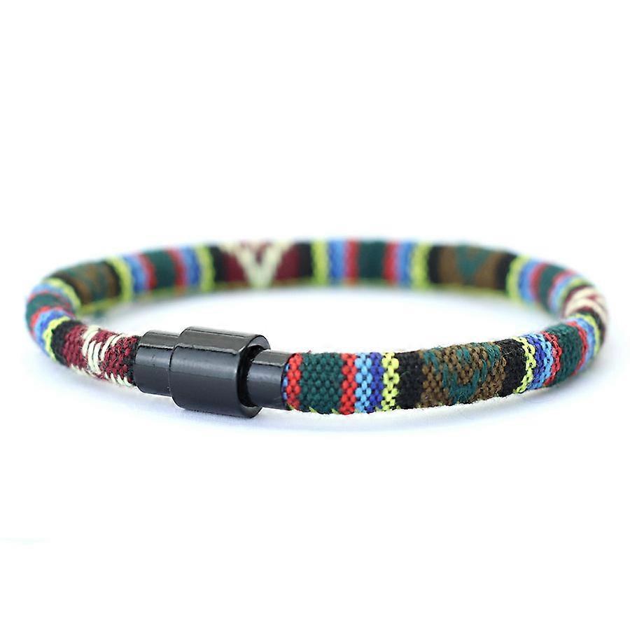 Boho Woven Bracelet for Men Colorful Braided Rope Wristband Magnetic Alloy Clasp Ethnic Surf Style Festival Gifts for Him